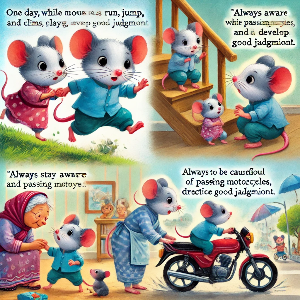 Gangan the little mouse was full of energy. He and his sister loved to play running and jumping games. They were both amazing at climbing stairs and scrambling up high places.