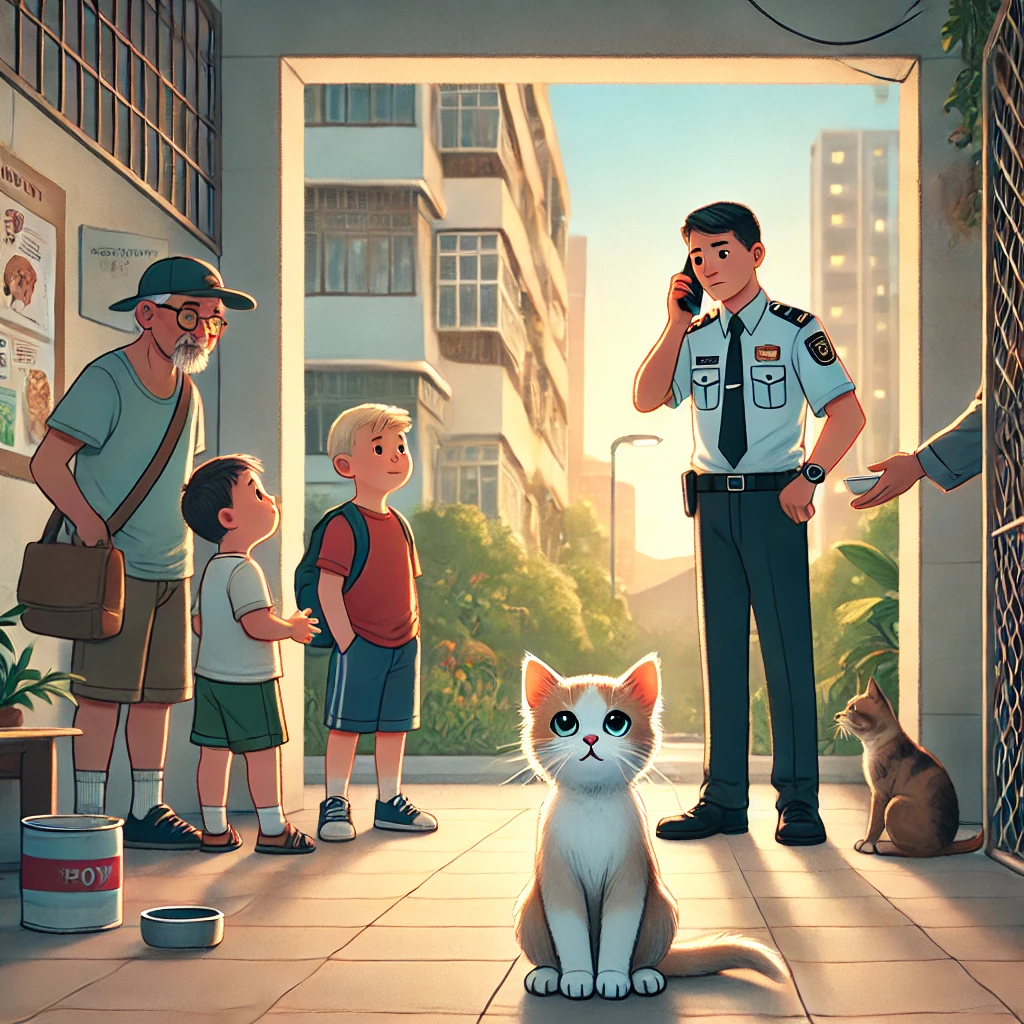 At last, my children came to understand why their father had not agreed to give food from our home so freely. For true kindness is not always giving what is easy—it is doing what is best. And so we decided together: instead of feeding the cat ourselves, we would ask the kind security guard to call the rescue service, so that the stray might be properly cared for, and live safely ever after.